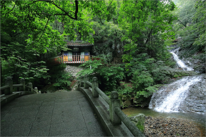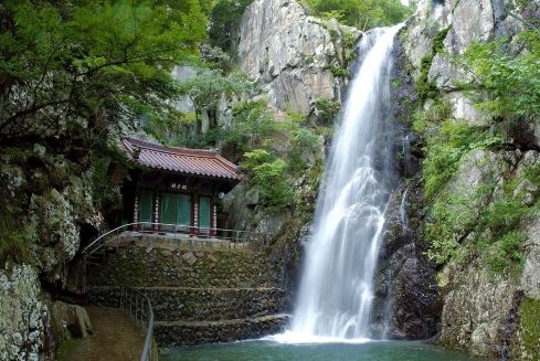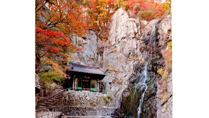 폭포 아래는 홍룡사라는 아담한 사찰이 있다. 폭포의 이름을 따른 홍룡사는 신라 문무왕 때 원효대사가 창건한 사찰로, 당나라에서 온 천 명의 제자를 가르쳤다는 89개의 암자 중 하나로 전한다. 조선 시대까지만 해도 영남 제일의 선원으로 꼽혔으나 임진왜란 때 소실돼 1970년 지금의 모습으로 중건됐다. 경내에 들어서면 먼저 곧게 자란 대숲이 반기고, 이내 대웅전, 무설전, 관음전, 종각, 산신각으로 이루어진 소박한 참선 공간이 고요한 휴식을 선물한다. 특히 가을에는 반짝이는 햇살 아래 너그럽게 빛나는 홍룡사의 또 다른 모습을 볼 수 있다.